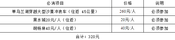 6、胡楊林景區(qū)游覽不能安排午餐,景區(qū)內(nèi)用餐及飲用水較貴,客人可以選擇自行在景區(qū)用餐,亦可酌情自行準備用水和干糧。