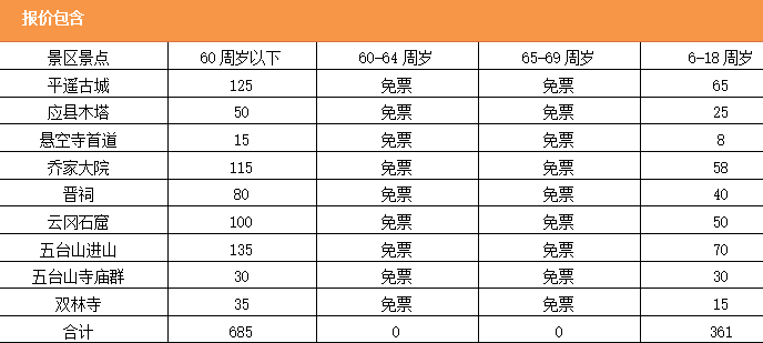 5、【門票】:已含景區(qū)首道大門票及平遙古城小交通60周歲以上門票立減675元/人